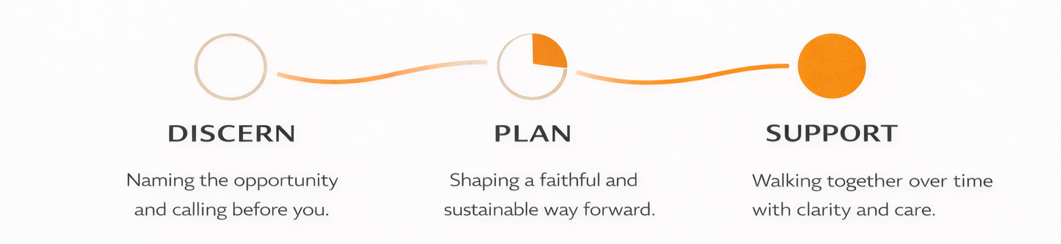 You sense a call to start something new—but you want clarity, readiness, and support before stepping forward. Discernment, preparation, and sustainability matter for the work ahead.